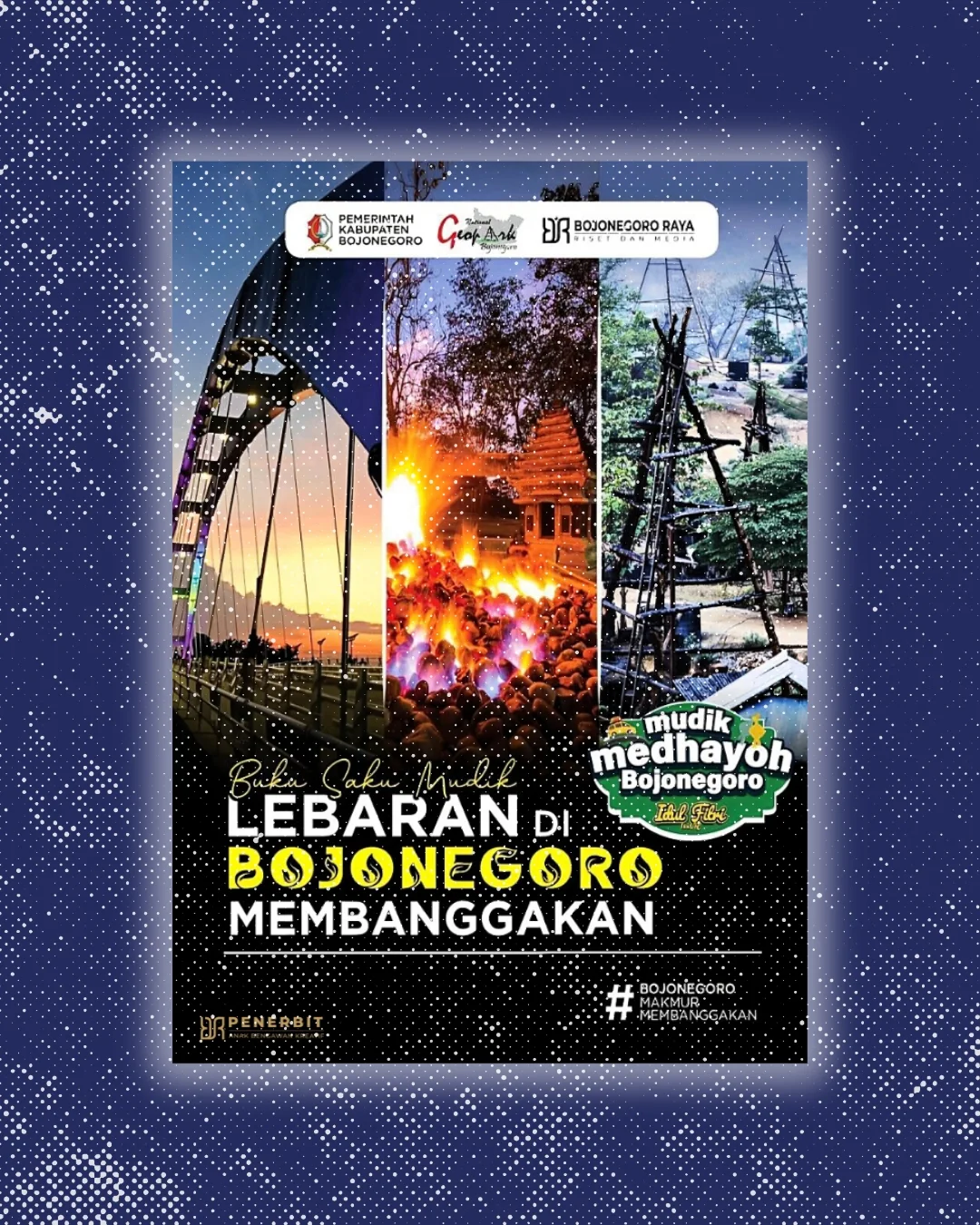 Buku disusun Bojonegoro Raya — Riset dan Media dan Bappeda Bojonegoro ini diterbitkan untuk para pemudik di Bojonegoro selama libur Lebaran. Panduan mudik atau medhayoh di Bojonegoro.